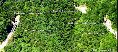 | Sopra: ponte della Fontanassa ( tra le gallerie Fontamassa 1° e Fontanassa 2° | |||||